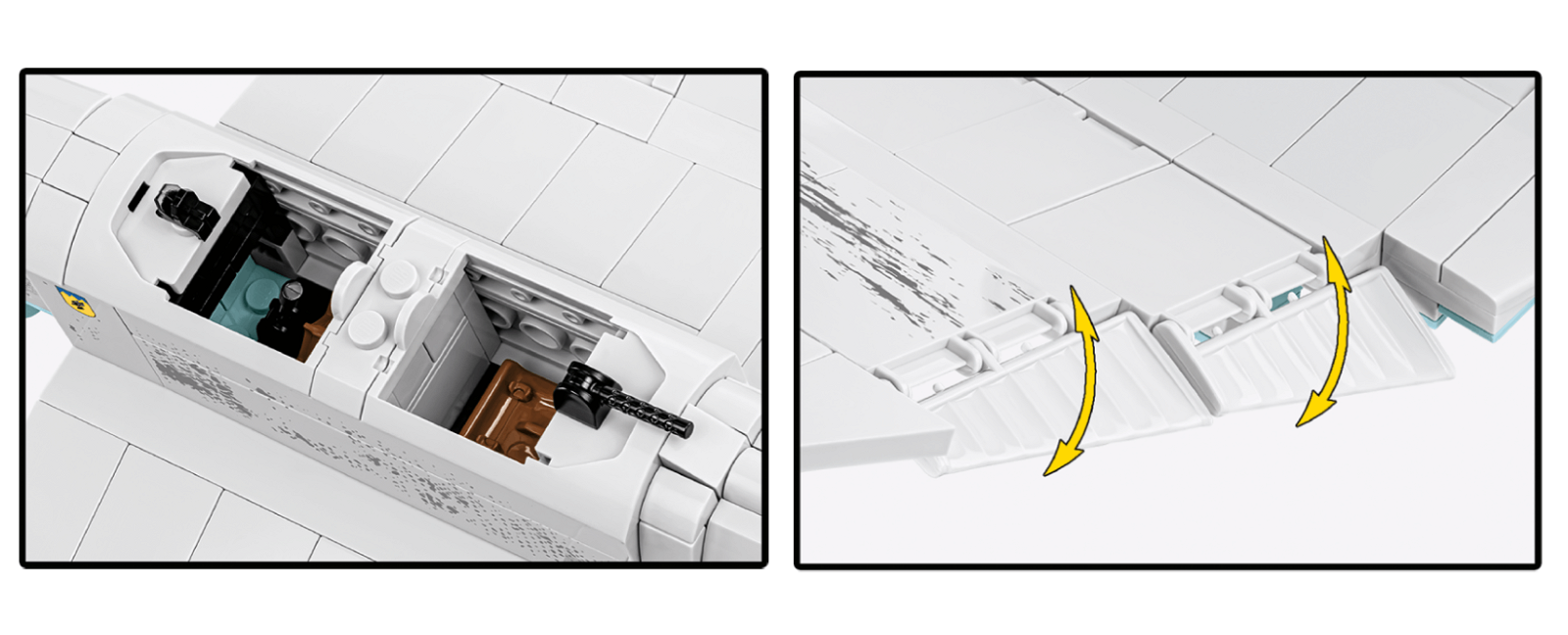 • Bewegliche Elemente – das Modell verfügt über einen beweglichen Propeller, Querruder und drehbare Räder mit Gummireifen. Das Cockpit lässt sich öffnen und ermöglicht es, Pilotenfiguren im Flugzeug zu platzieren.