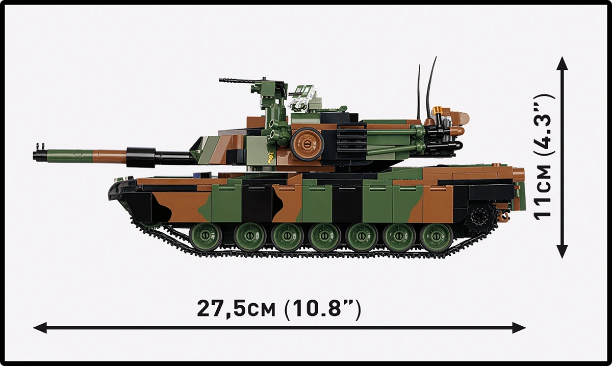 Bewegliche Elemente – Der Turm ist um 360° drehbar und das Geschützrohr kann in verschiedenen Winkeln positioniert werden. Dies ist ideal, um dynamische Gefechtsszenen nachzustellen, zu spielen und auszustellen. Der Panzer verfügt über zu öffnende Luken, Wartungsluken am Heck und eine abnehmbare Heckpanzerplatte, die einen Blick ins Innere ermöglicht. Neben der leistungsstarken 120-mm-Kanone verfügt das Modell über zwei bewegliche Maschinengewehre: ein M2 Browning und ein M240, was den Realismus erhöht.