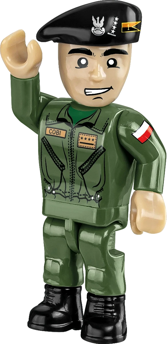 Panzerbesatzungsfigur – Das Set enthält eine polnische Panzerbesatzungsfigur in einer originalgetreuen Uniform mit schwarzer Baskenmütze, bedruckt mit polnischem Adler, militärischem Rang und Wimpel. Sie kann in die zu öffnende Luke oder neben den Panzer in einem Diorama platziert werden.