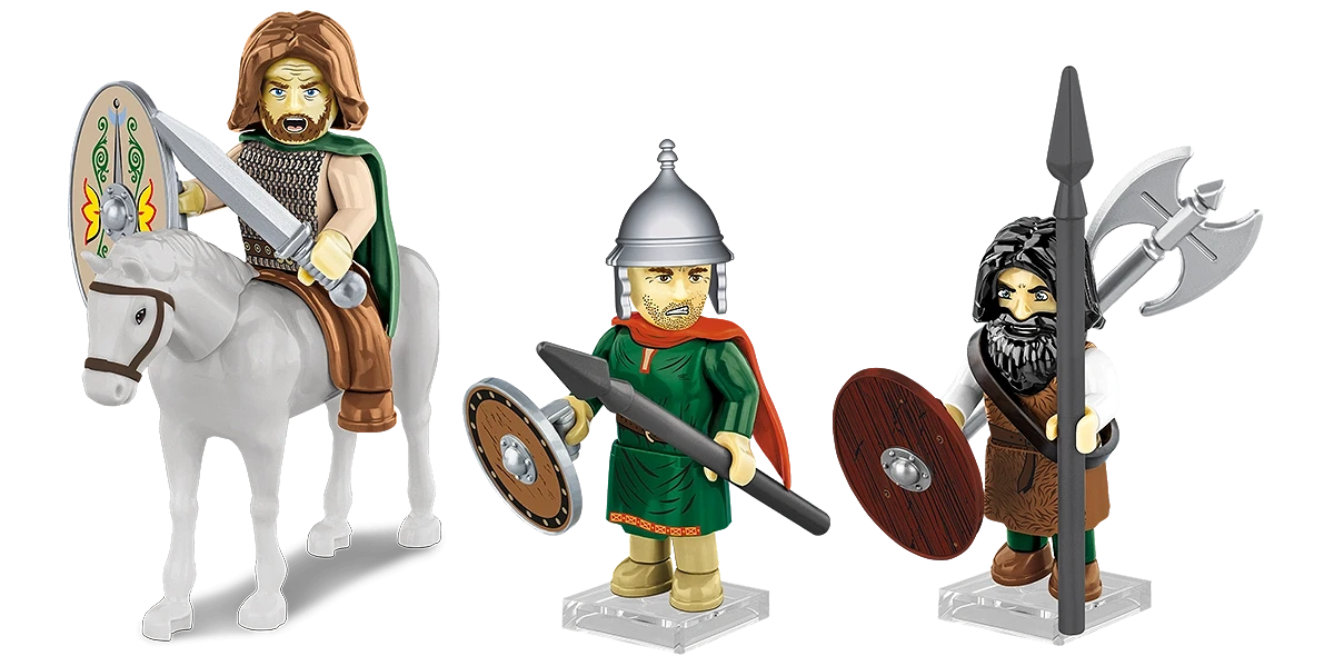 Realistyczne nadruki oraz dołączone do zestawu charakterystyczne uzbrojenie i tarcze pozwolą Ci lepiej poznać czasy, gdy walka z Rzymem była sprawą honoru i przetrwania.