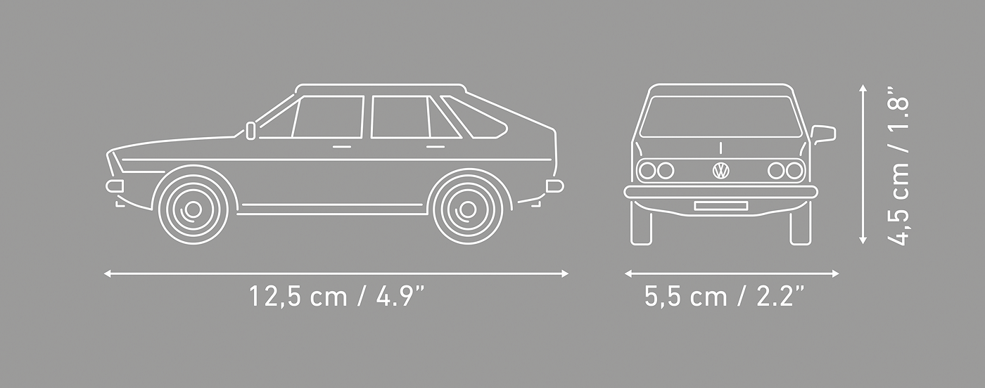 Perfekcyjne odwzorowanie sylwetki Passata B1 Sedan – model oddaje charakterystyczną linię pierwszego Passata: prostą, elegancką maskę, klasyczny trzybryłowy profil oraz wyraźnie zaakcentowany tył z charakterystyczną klapą bagażnika. Każdy element zaprojektowano z myślą o realizmie i historii automobilizmu.