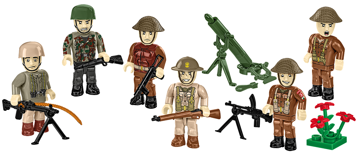 Two soldiers of the Polish Armed Forces (equipped with Allied infantry uniforms and weapons) - armed with, among other things, equipped with a distinctive Bren machine gun with a bipod, they provide fire support during the attack. Are perfect for dynamic scenes of assault on fortified enemy positions. Their presence in the set is a tribute to the Polish contribution to the capture of Monte Cassino and one of the strongest historical accents of the entire set.