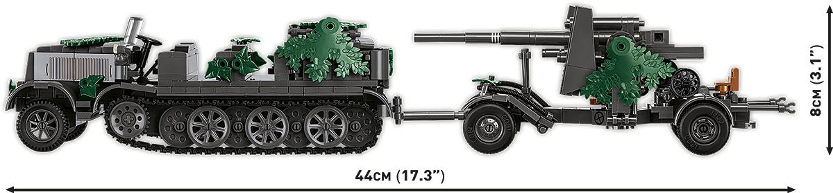• Two iconic models in one set – the 8.8 cm Flak 18 gun on a Sonderanhänger 201 trailer and the Sd.Kfz. 8 artillery tractor, both excellent for play and for a collector's diorama.